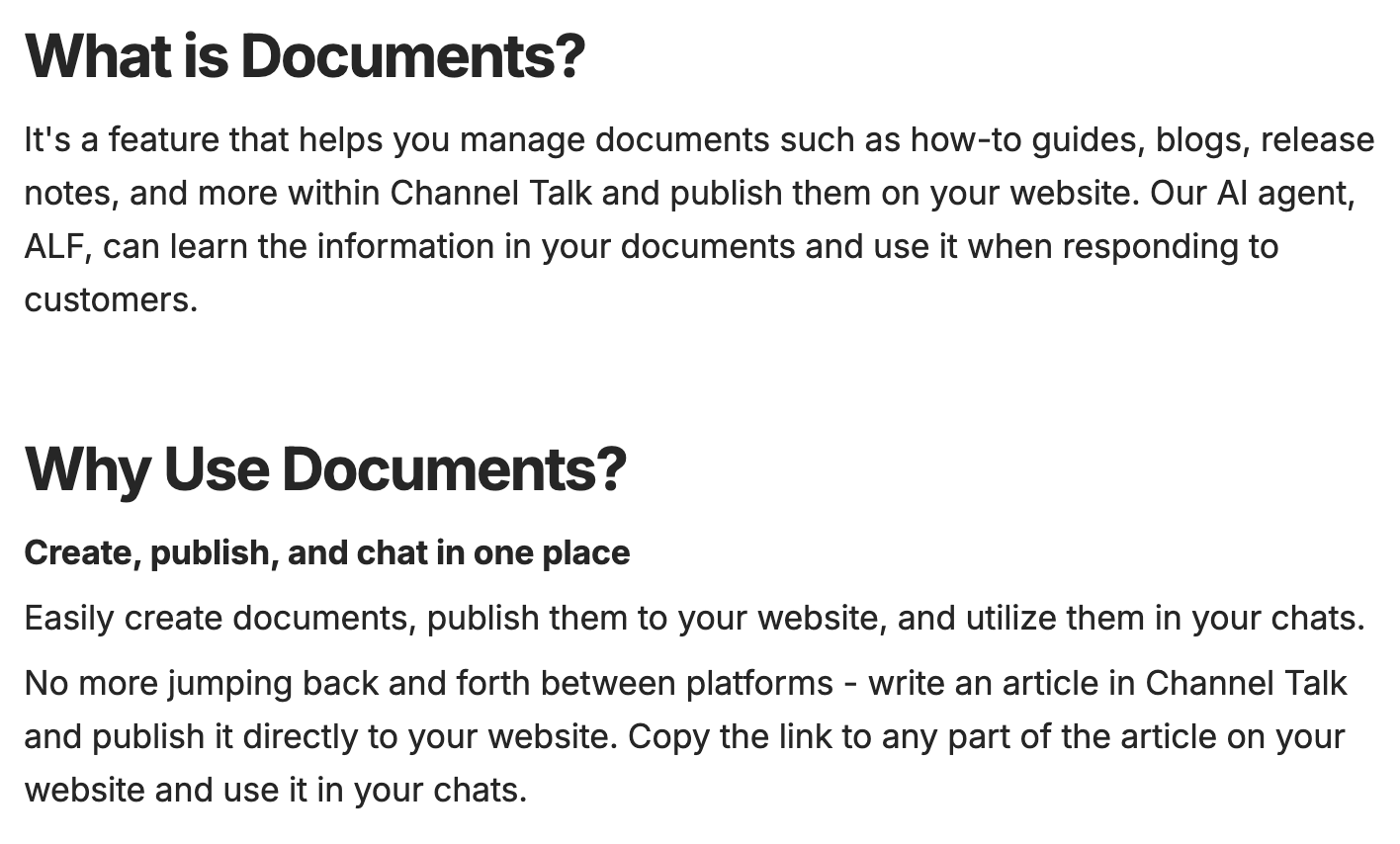 Blocks is a tree-structured data model that is able to express rich styled text documents. Article contents in Channel Talk Documents are served in Blocks format.