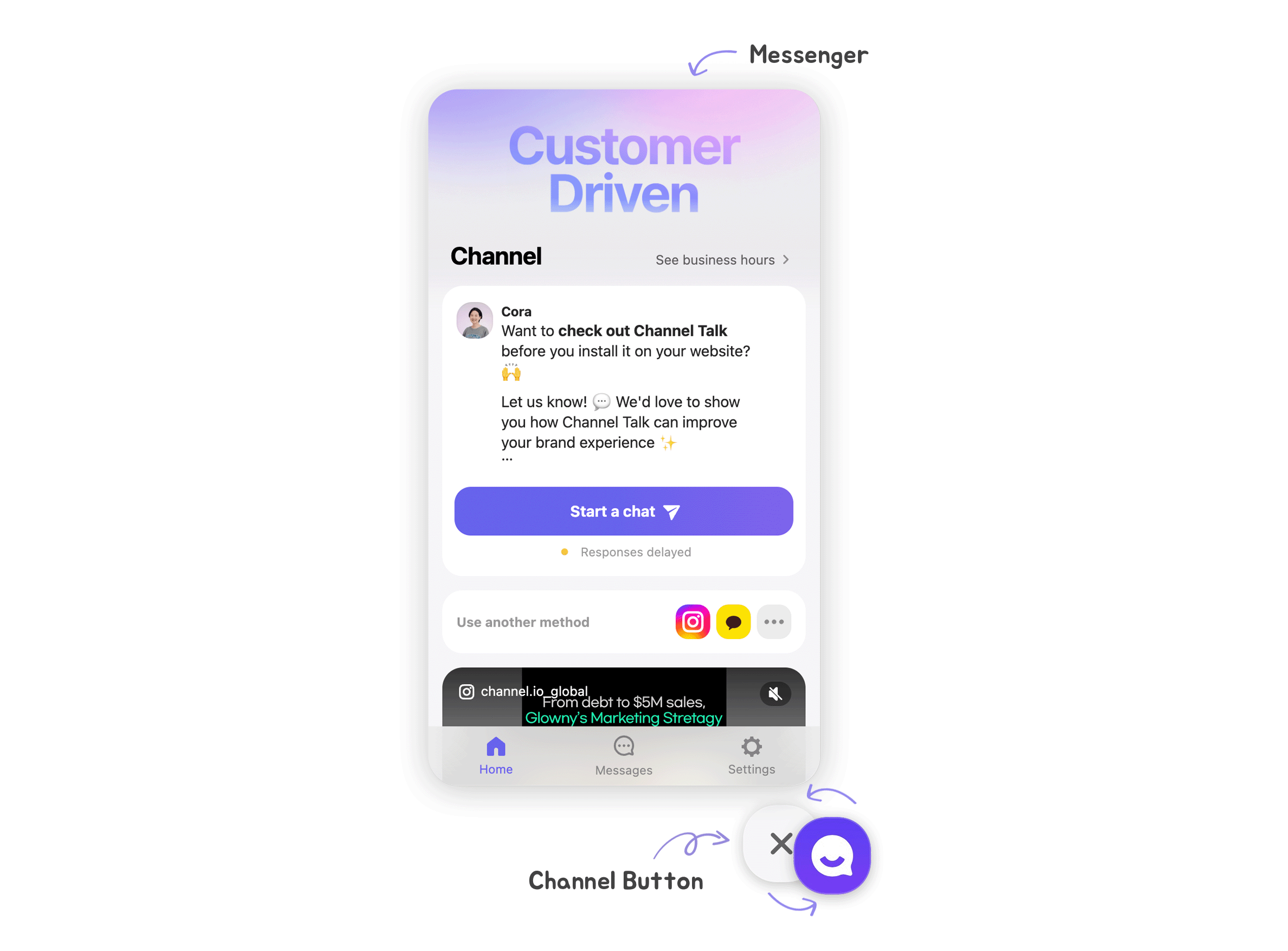 チャネルトークSDKを通じて提供されるチャットボタン、ポップアップ、メッセンジャーなどのユーザーインターフェースをすべて含む概念です。