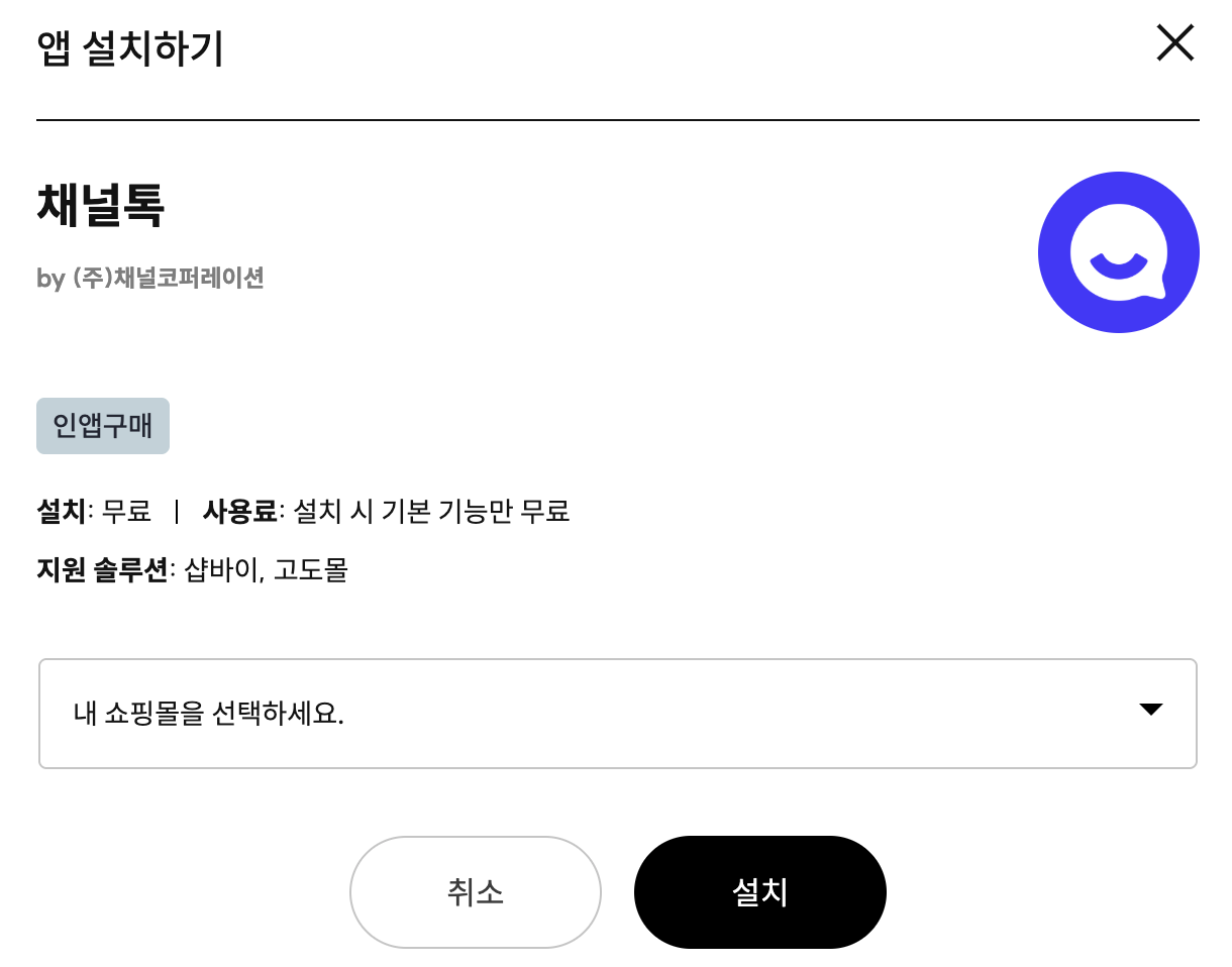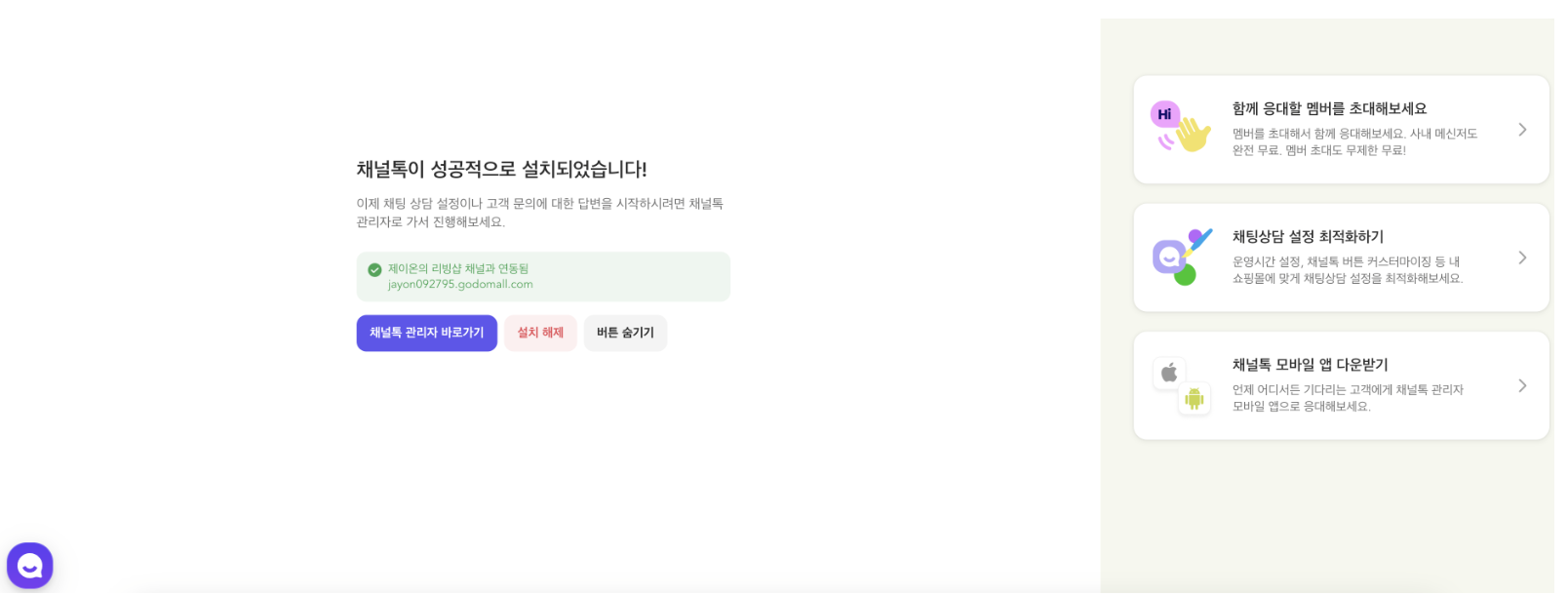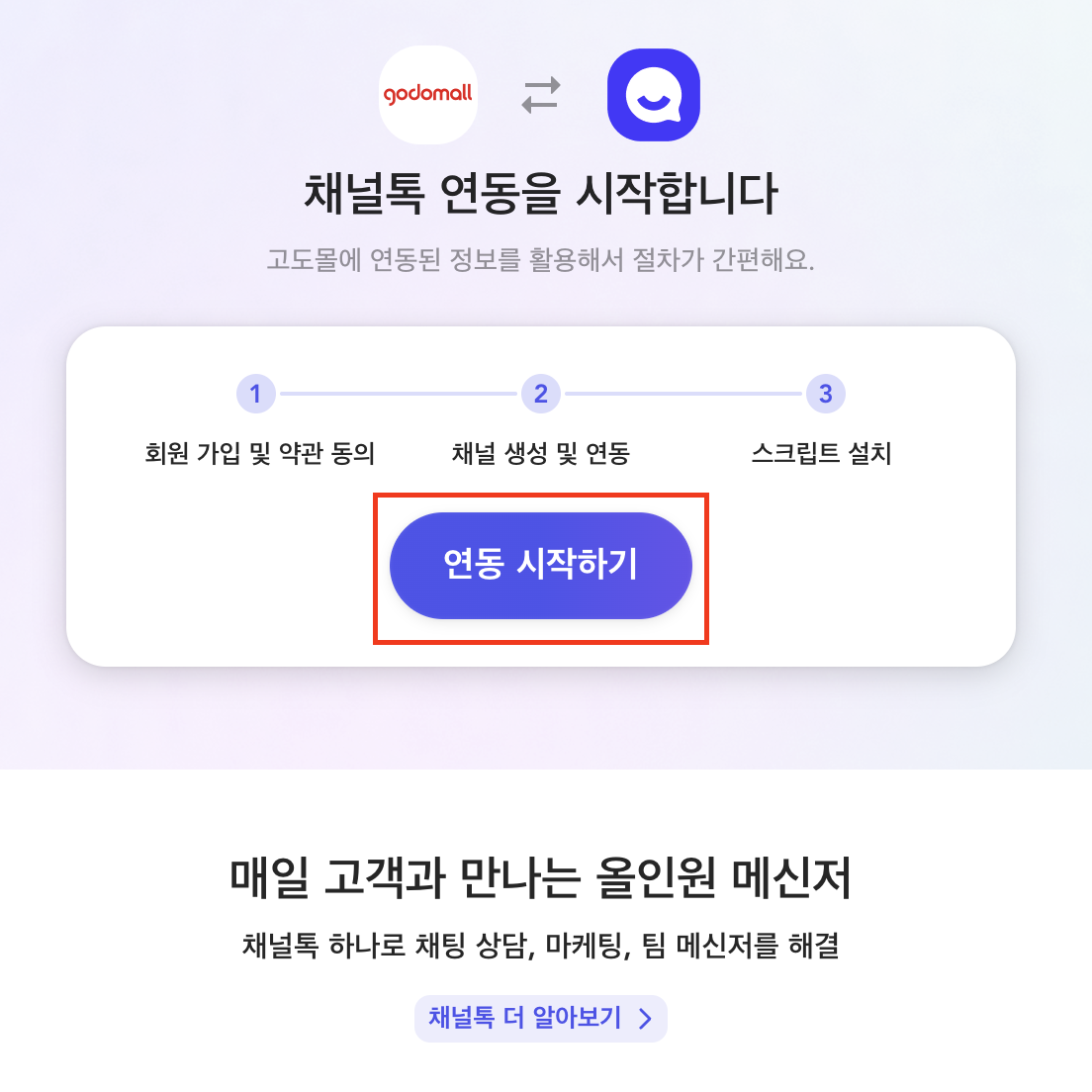 3. 이후 위 "고도몰 채널톡 설치하기" 가이드의 1번 과정부터 연동을 시작해 주세요.