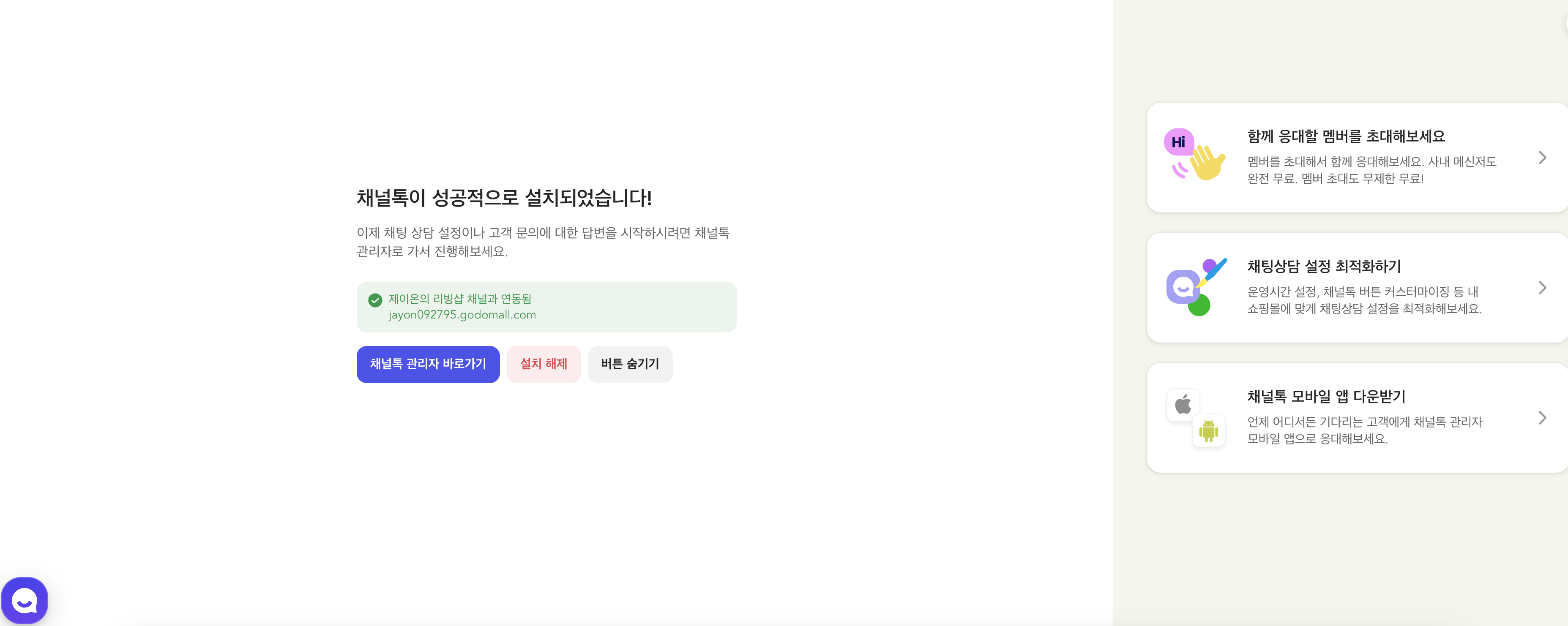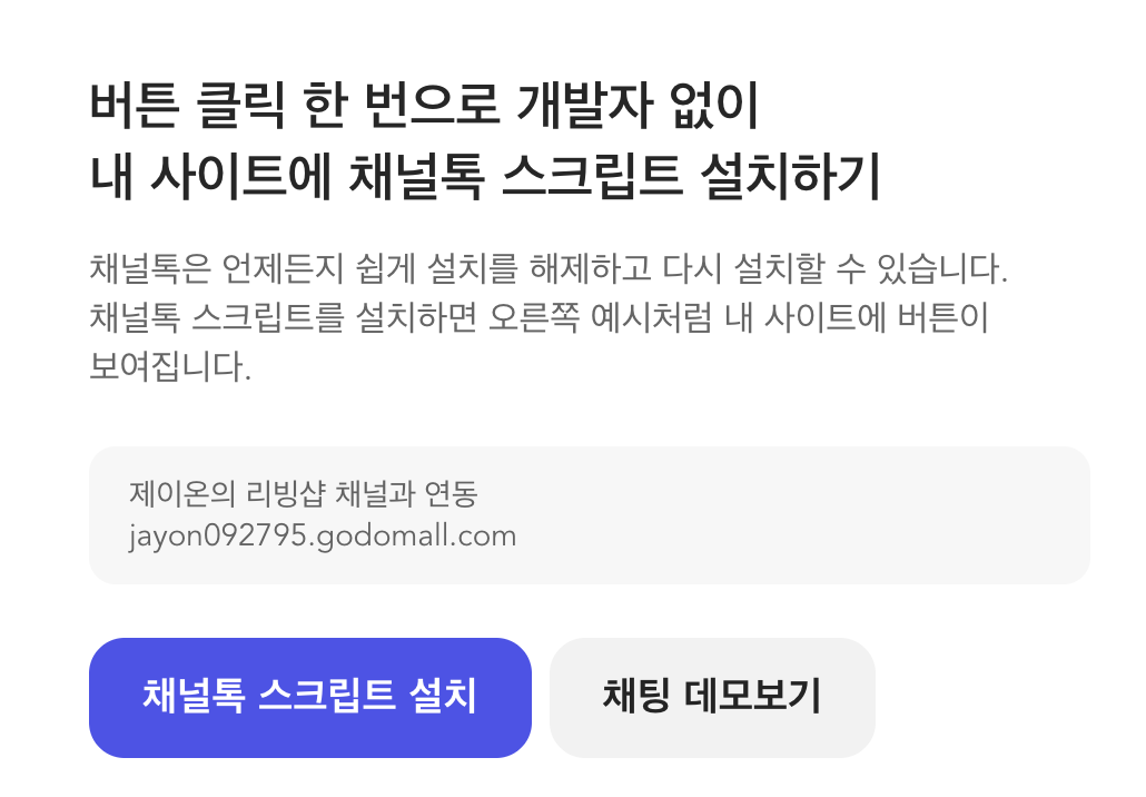채널톡 스크립트 설치 버튼을 클릭하면 자동으로 설치됩니다