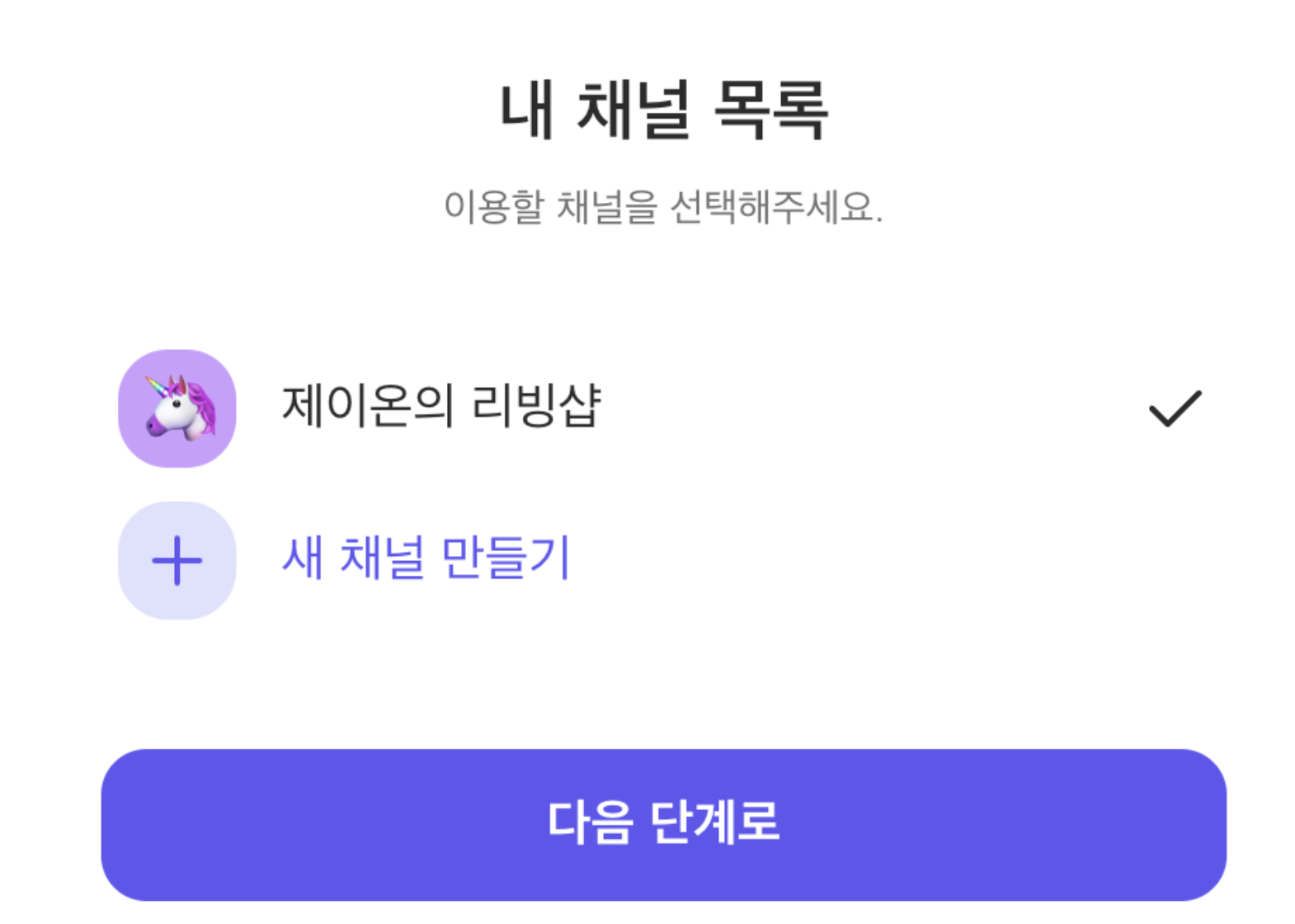 내 채널 목록에서 연결할 채널을 선택해 주세요. 만약 내 채널이 여러 개라면 사이트와 연동할 1개의 채널을 선택해 주세요.