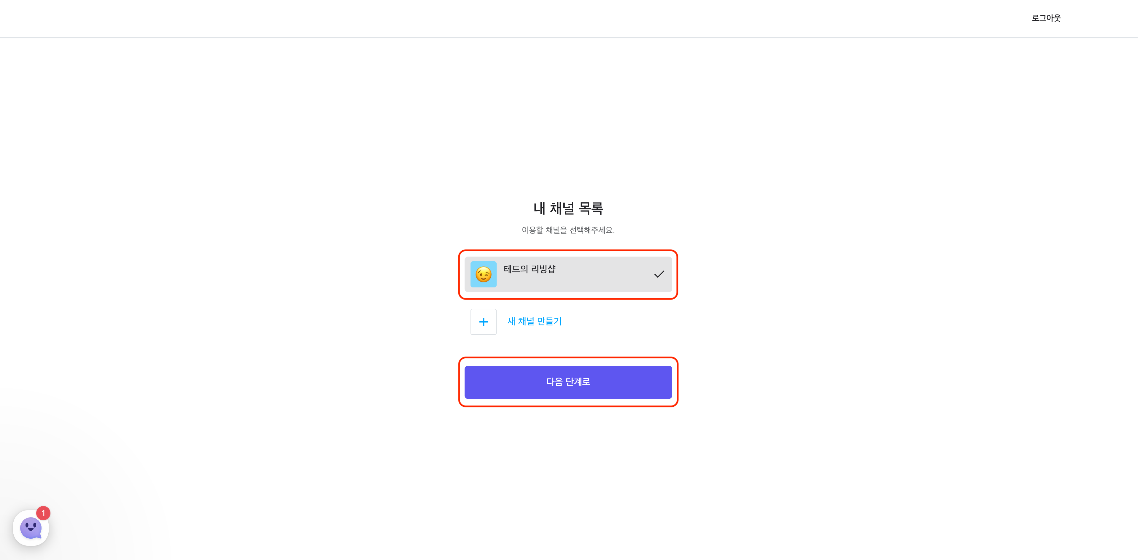 내 채널 목록에서 연결할 채널을 선택해 주세요. 만약 내 채널이 여러 개라면 사이트와 연동할 1개의 채널을 선택해 주세요.