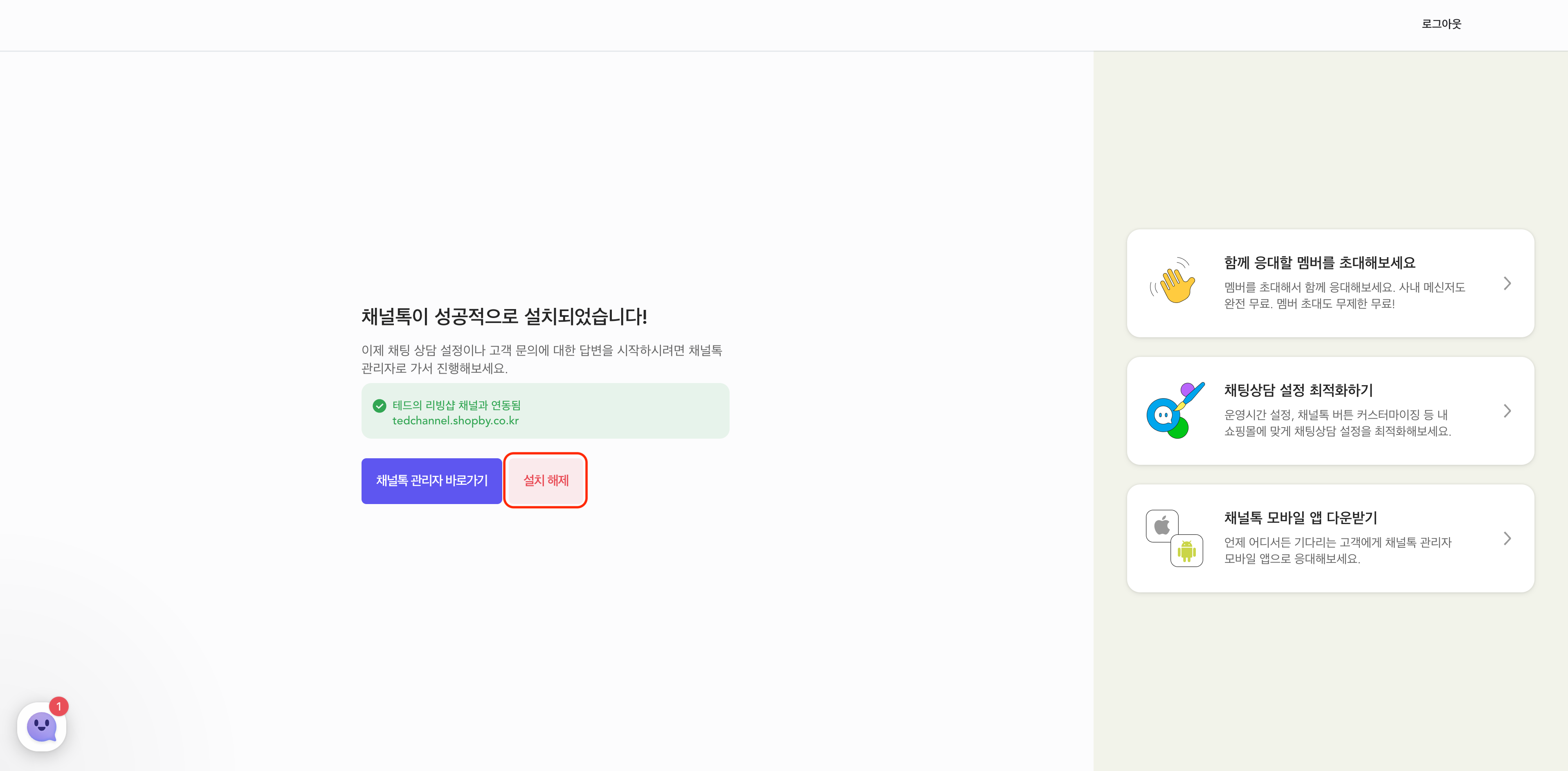 2023.11.17 이전 샵바이를 통해 채널톡을 설치하신 경우 아래 과정을 진행해 주세요.